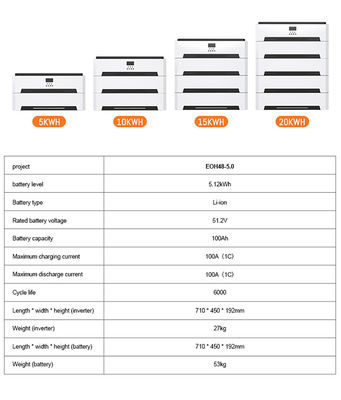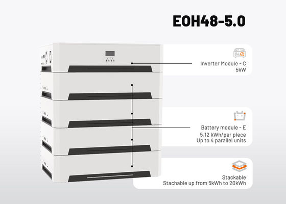 Hệ thống này có bộ biến tần sóng sinus tinh khiết 5KW với bộ điều khiển sạc năng lượng mặt trời MPPT hiệu quả cao được tích hợp, kết hợp với các gói pin LiFePO4 có tuổi thọ siêu dài (5,12KWh mỗi gói).Hệ thống hỗ trợ xếp chồng lên đến 4 gói pin để đạt được tổng công suất pin 20KWh, cung cấp nguồn điện ổn định cho toàn bộ ngôi nhà của bạn.