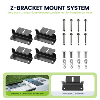 Việc lắp đặt rất đơn giản với các tùy chọn gắn cố định được bao gồm trong bộ sản phẩm. Các giải pháp gắn này được thiết kế để gắn an toàn tấm pin mặt trời vào mái của RV của bạn hoặc bất kỳ bề mặt phù hợp nào khác, đảm bảo tiếp xúc với ánh nắng mặt trời tối ưu và hấp thụ năng lượng tối đa. Các tùy chọn gắn cố định cũng cung cấp sự ổn định và an toàn trong khi di chuyển, ngăn ngừa mọi hư hỏng cho tấm pin mặt trời do chuyển động hoặc rung động. Tính năng này đặc biệt có giá trị đối với những người thường xuyên đi đường và muốn có một hệ thống năng lượng mặt trời bền bỉ, lâu dài có thể chịu được sự khắc nghiệt của việc đi lại.